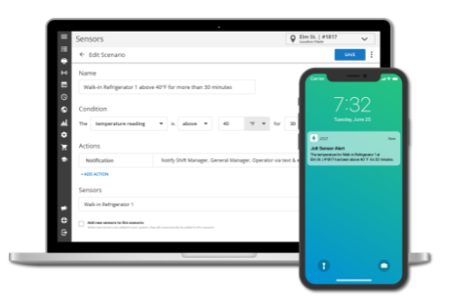 Our sensors allow you to remotely monitor the temperature of all your equipment. The moment a temperature falls outside the appropriate range, you get a notification. In short, sensors protect your business’ most costly assets—your inventory and your reputation.